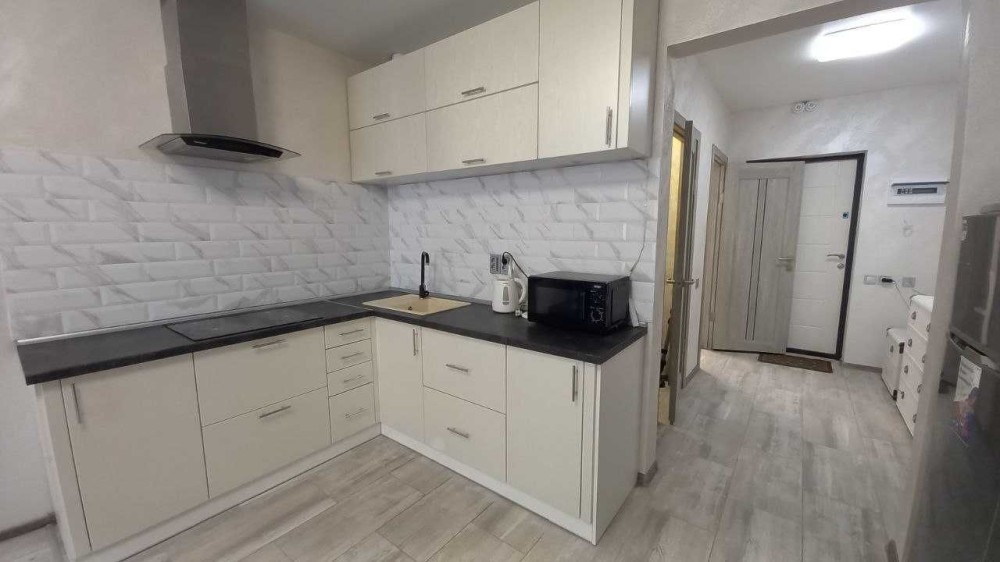 7-16эт,40 м2. Квартира-студія в білих тонах. Просторе приміщення: вітальня та кухня 27 метрів-(відмінна кухонна витяжка).