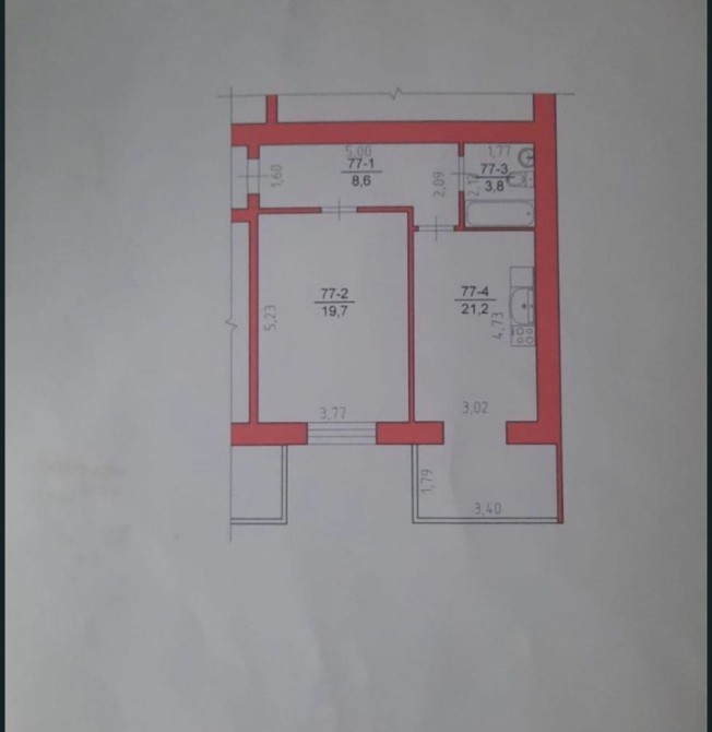 Площа квартири 53,3 м2