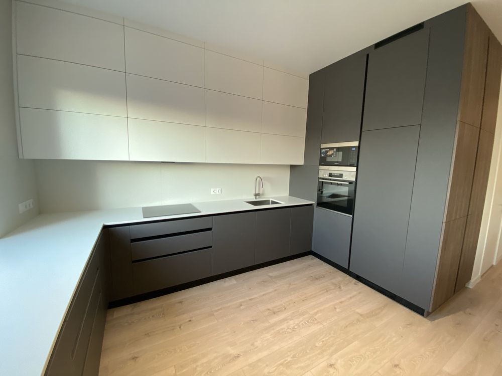 • Функціональна преміальна кухня (фасади RAUVISIO CRISTAL, стільниця — LAMINAM, кераміка) зі вбудованою технікою (BOSCH, Whirlpool), включаючи преміальну кавомашину Nivona, холодильник для вина, чайник, тостер, увесь необхідний посуд.
