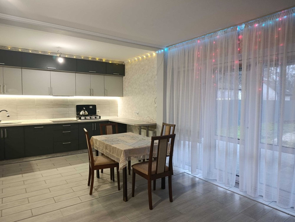 Зручне планування передбачає: прихожу з гардеробною, 2 окремі кімнати, ванна кімната, велику кухню вітальню з каміном 40м2 з панорамними вікнами! Простора тераса, то особлива любов - тут чарівний і тихий захід сонця в родинному колі, а також голосні поседеньки з друзями до світанку)