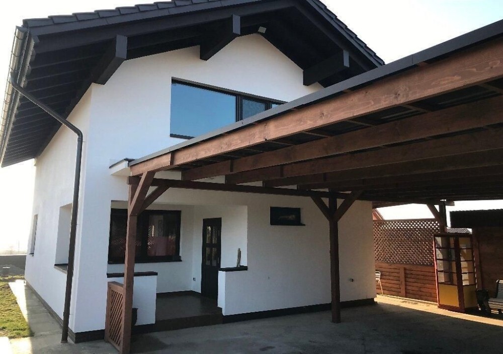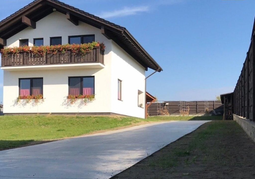 Весь будівельний матеріал завезений з Угорщини. Матеріал стін - Поротерм Клима 44 блок на перлиті, дах - черепиця металокерамічна, товщина 50 см.