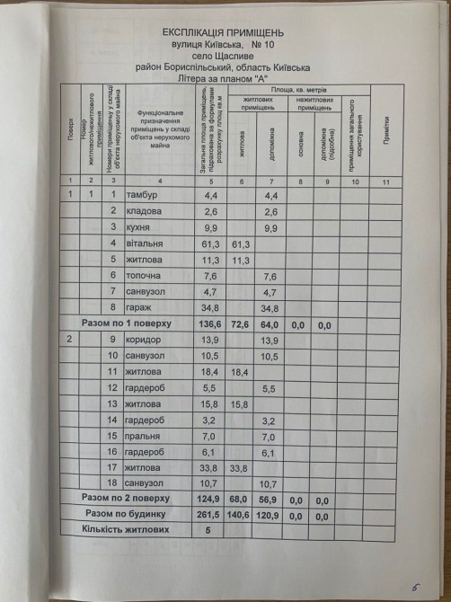 • Площа будинку: 261 м²