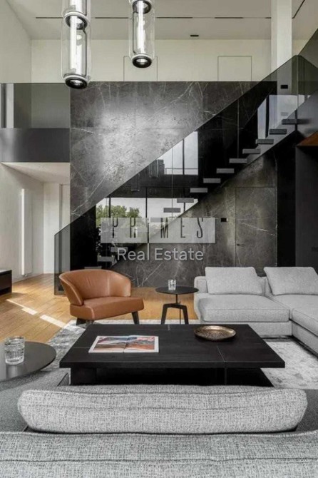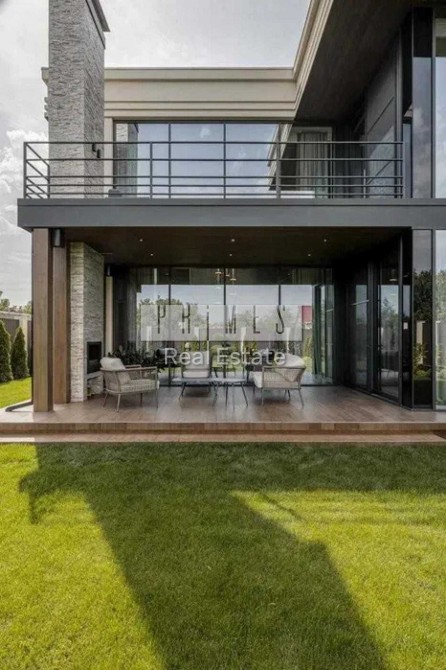 Це двоповерховий вітвір мистецтва, загальною площею 390 кв.м. Будинок з двома террасами, з каміном та дизайн інтер'єру в сучасному стилі, тільки з натуральних матеріалів. Панорамні вікна та багато сміливих рішень в інтер'єрі. Кухня з гігантським островом із керамограніту, підрізаним під кутом 45 градусів. Меблі із захисним покриттям від відбитків пальців. Техніка Miele, лише посудомийна машина Bosch.