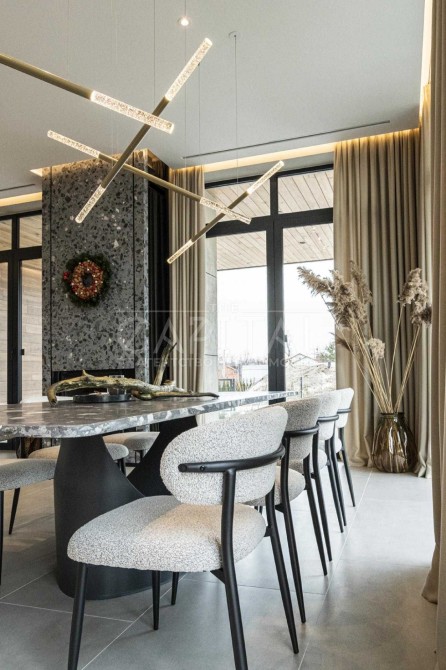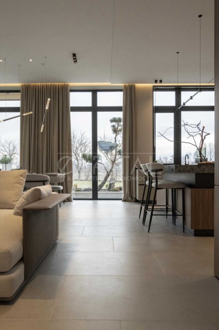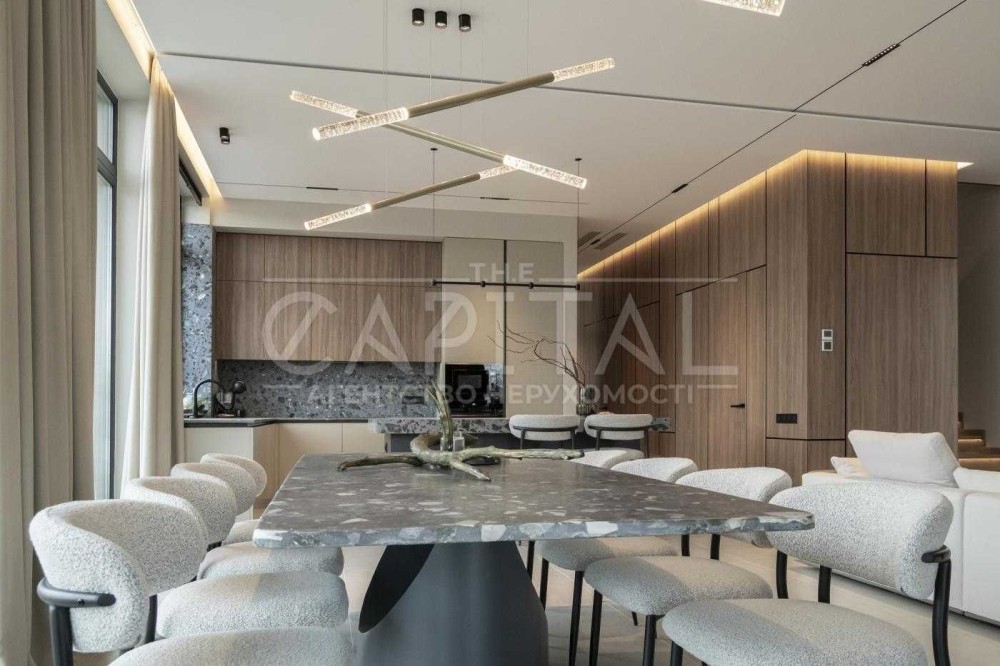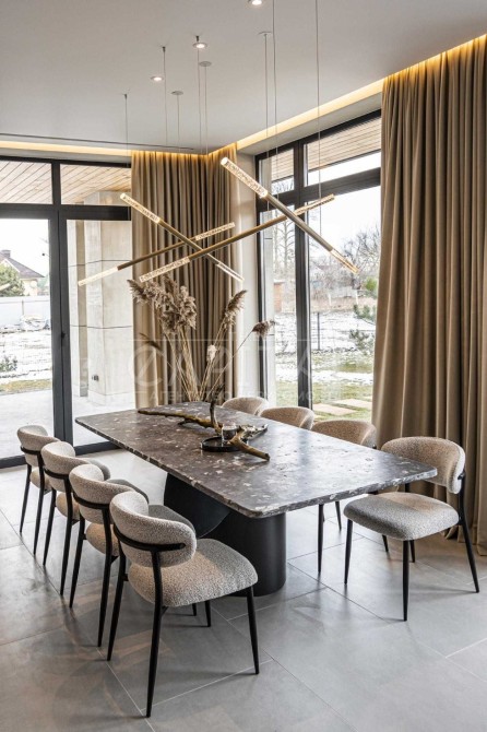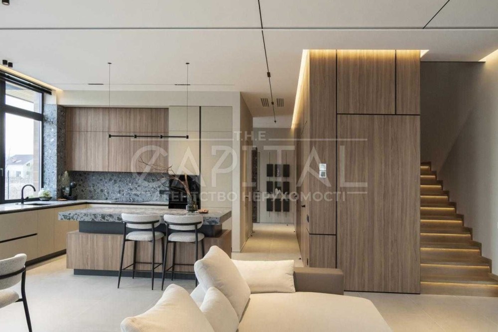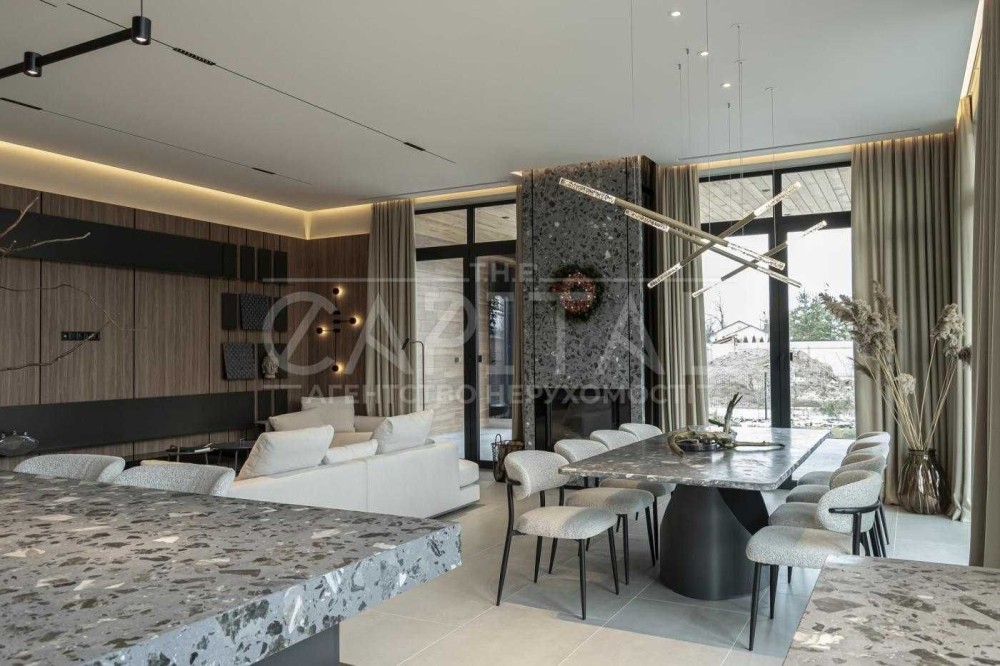 В середині будинку виконаний сучасний авторський ремонт з повноцінною комплектацією якісної побутової техніки та меблевою фурнітурою від провідних світових брендів.