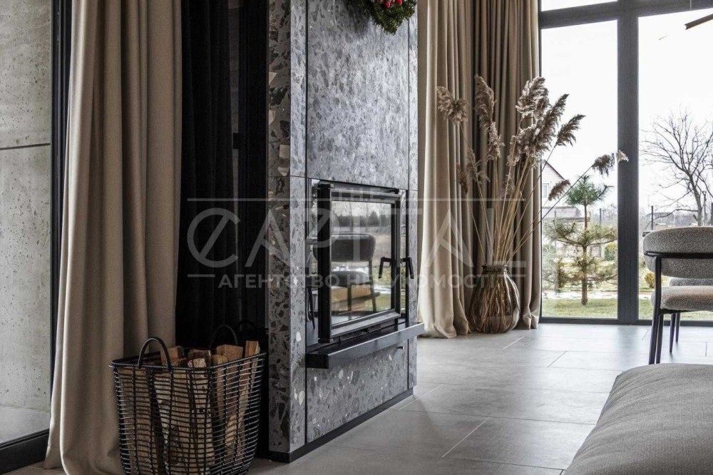 - Велика кухня-вітальня з дров’яним каміном та виходом на криту терасу і зону BBQ ;