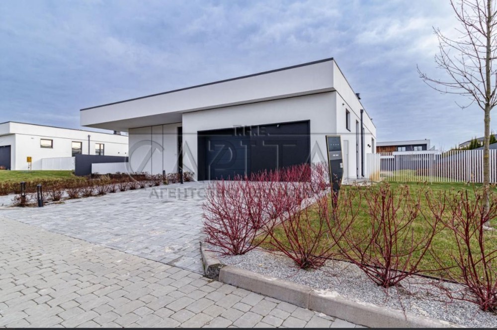 Продається сучасний будинок (з плоским дахом) 240 м2 у котеджному містечку с.Крушинка. Будинок має вбудований гараж. Ділянка 12 соток з відкритою терасою.