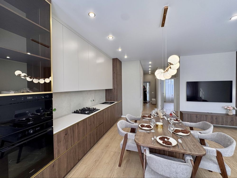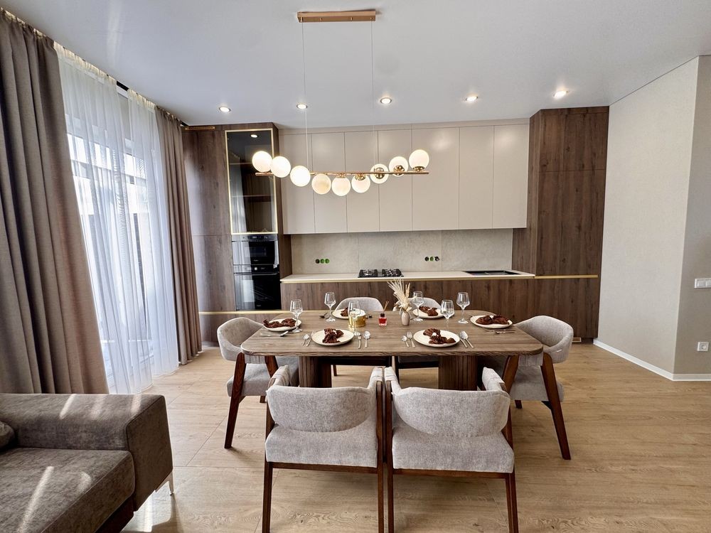 В будинку сучасний ремонт в поєднанні зі стильними меблями створює затишну атмосферу. Кухня оснащена вбудованою технікою відомих брендів Bosh, Whirlphool, у санвузлах якісна та надійна сантехніка.