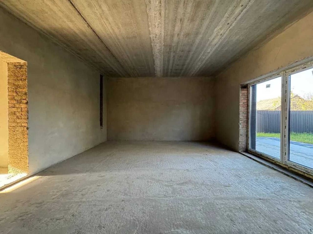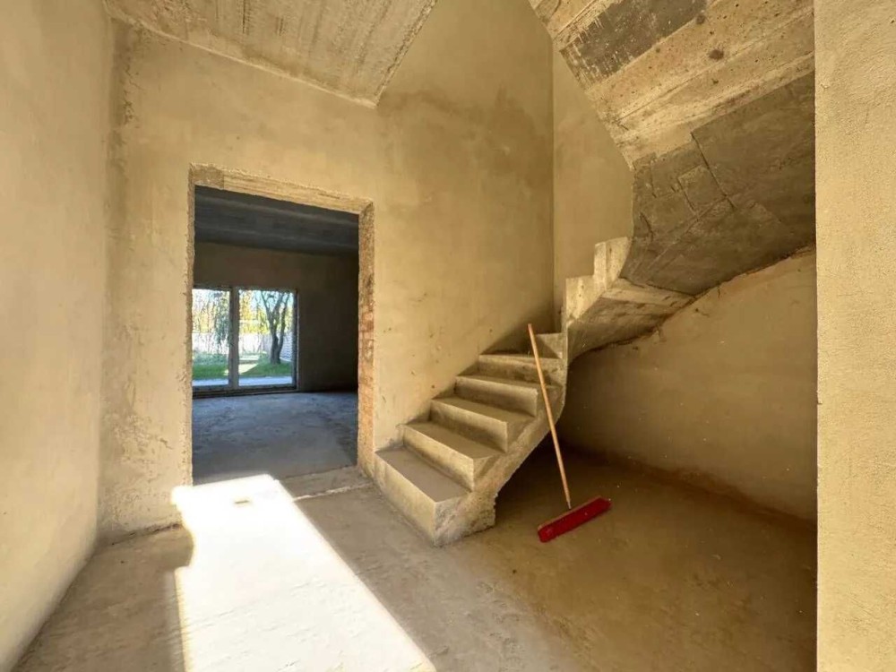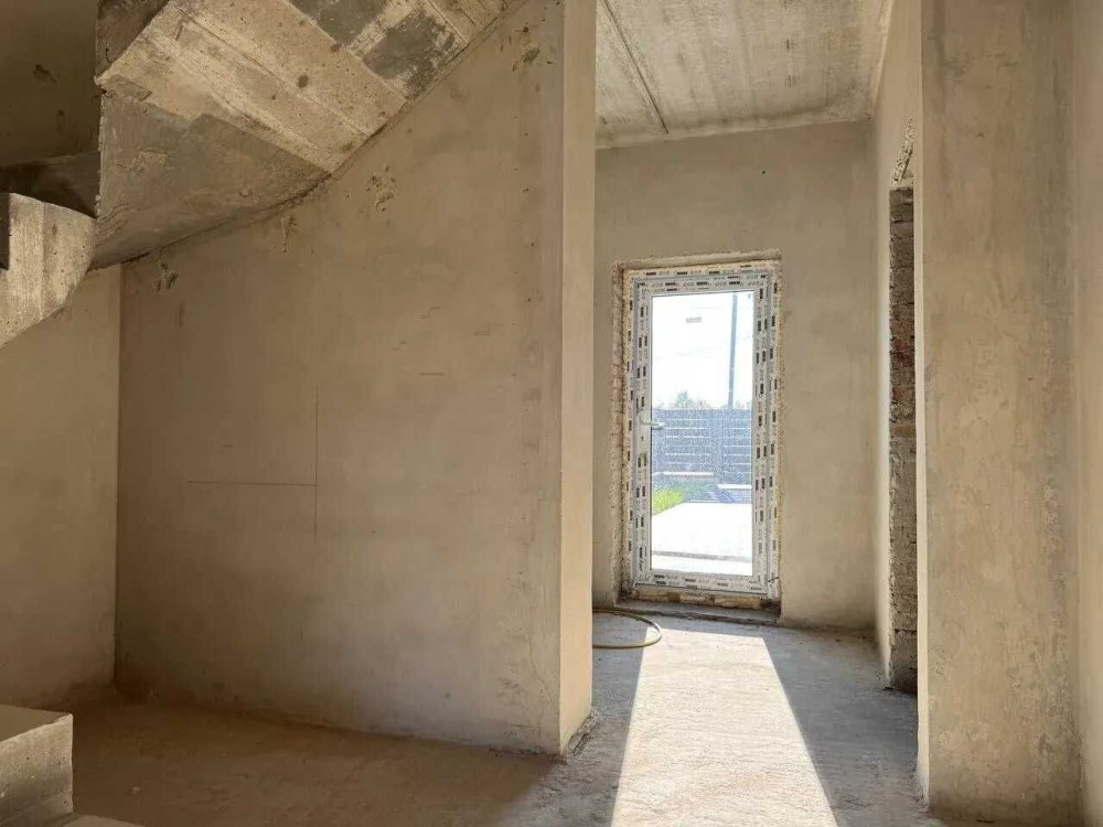 У будинку виконана піщано-вапняна штукатурка стін готово для фінішного оздоблення.