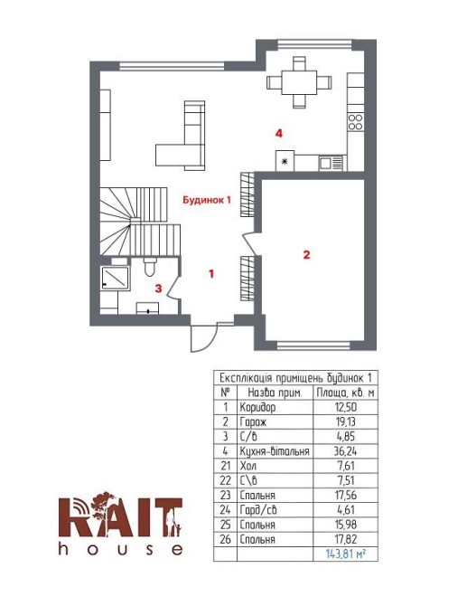 Продумане зонування забезпечує комфорт як для щоденного проживання, так і для прийому гостей.