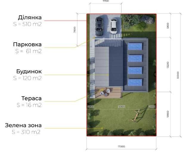 Окремий будинок в котеджному містечку, що пропонує значно більше вільного простору для реалізації ваших мрій. Загальна площа ділянки 510 м². Площа будинку становить 105 м² (+ тераса з коефіцієнтом 0, 3). Велика зелена зона площею 344 м², де легко розміститься басейн та зона барбекю. Затишна тераса 17 м² та парковка для двох авто. Наші технологічні переваги: