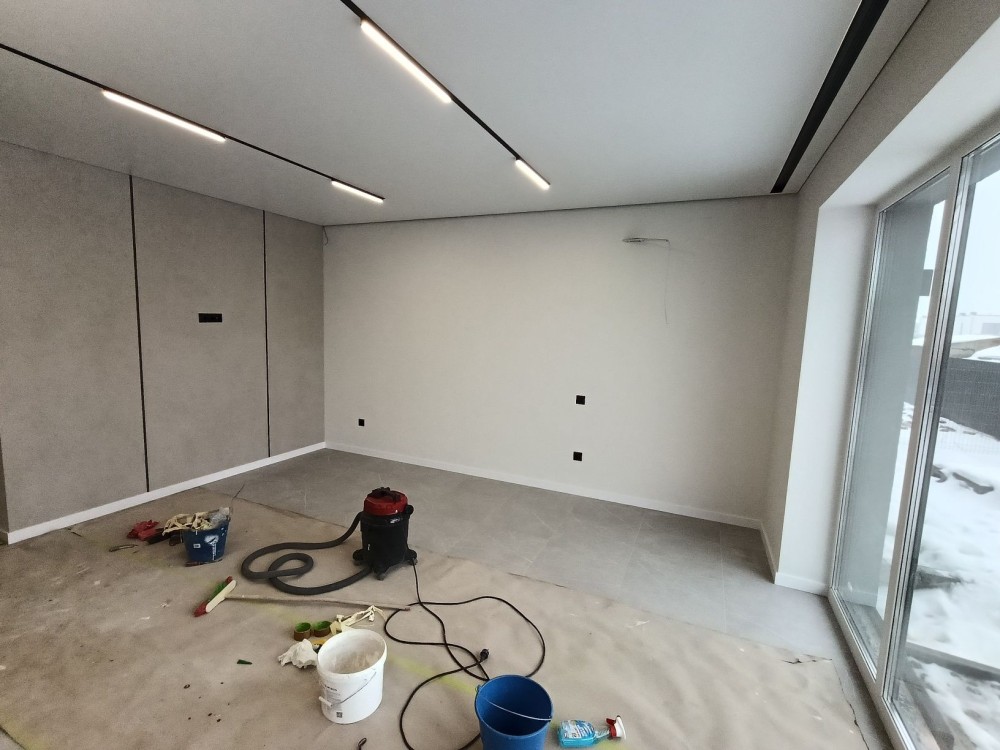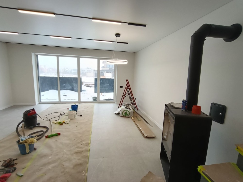 У будинку виконано якісний дизайнерський ремонт з використанням сучасних матеріалів та інноваційних рішень. Простір наповнений світлом завдяки панорамним вікнам, а LED-підсвітка сходів створює особливу атмосферу.
