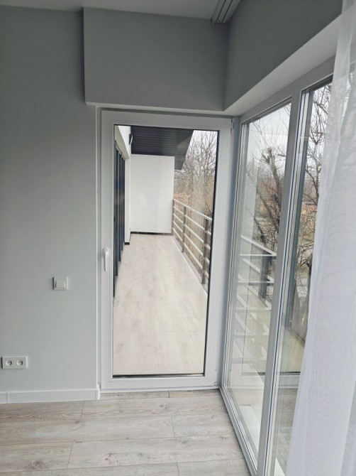 Просторий балкон та освітлення території на авто у вечірній час.