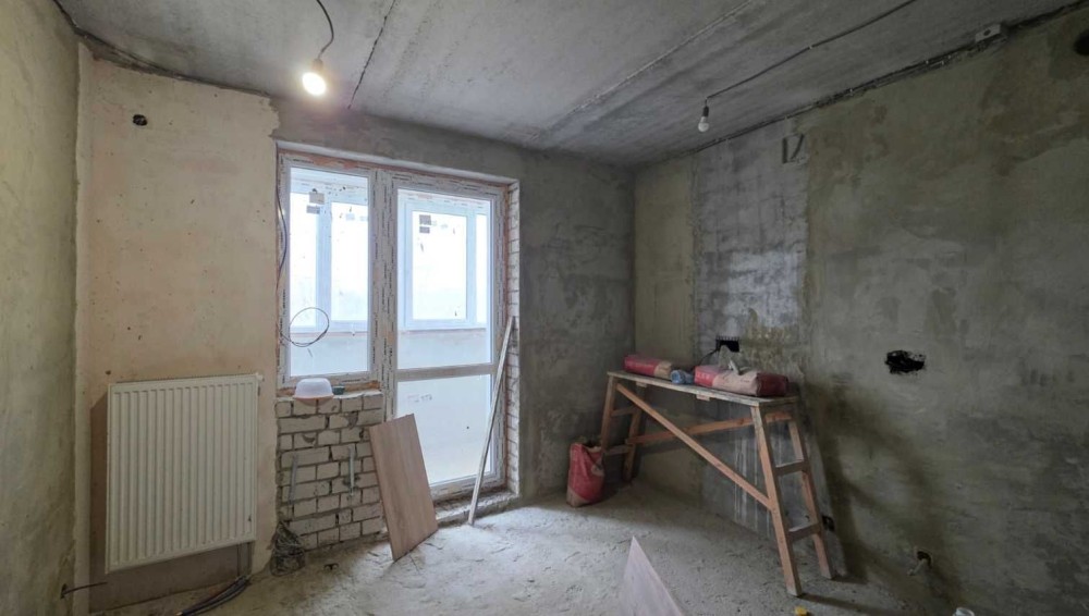 Стан будівельний. Частково відштукатурені стіни.