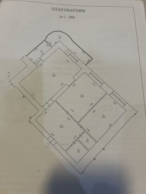 Висота стелі 2,75 метра.