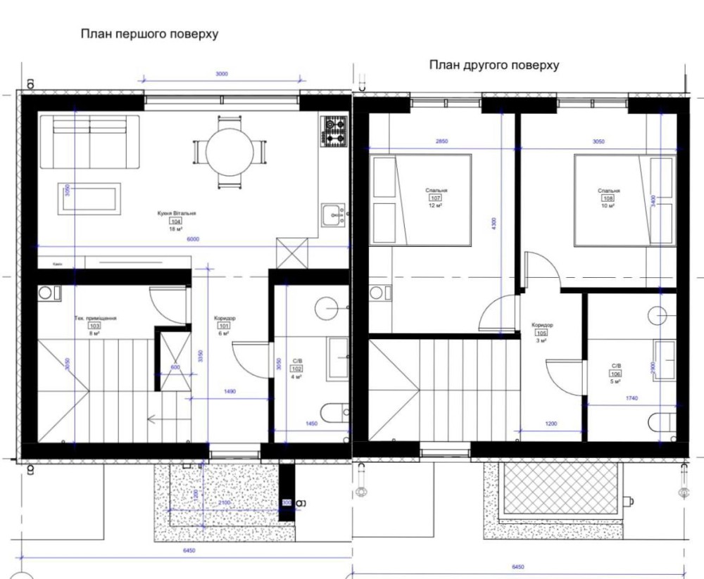 дві окремі спальні, два с/у, кухня-вітальня та технічне приміщення.