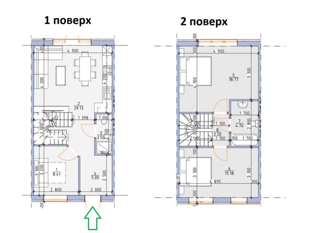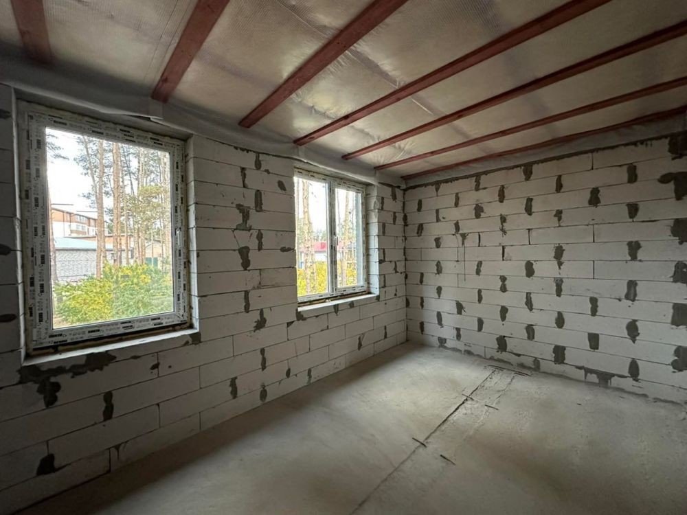 Загальна площа будинку 86 м². Раціональне планування: три окремі кімнати та велика кухня. Додатково мансардний поверх площею 42 м², який можна облаштувати як повноцінний третій поверх.