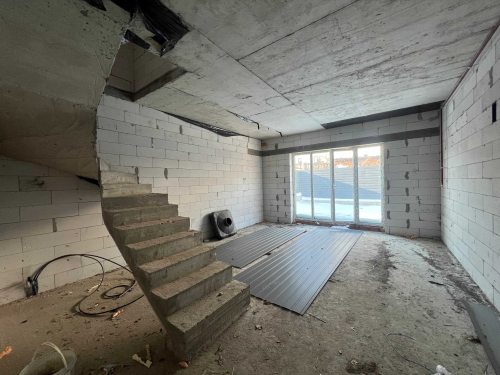 На першому поверсі — простора кухня-вітальня для сімейного затишку, санвузол та окрема технічна кімната.