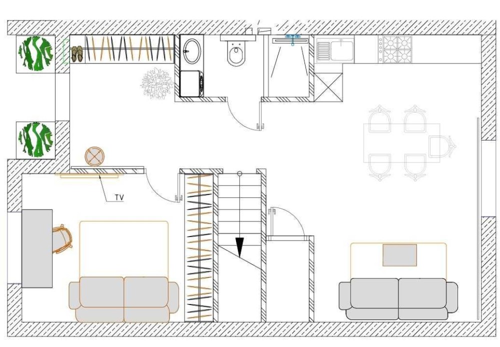 Окрема перевага — бетонні сходи, що завжди є важливим плюсом для надійності та довговічності будинку.