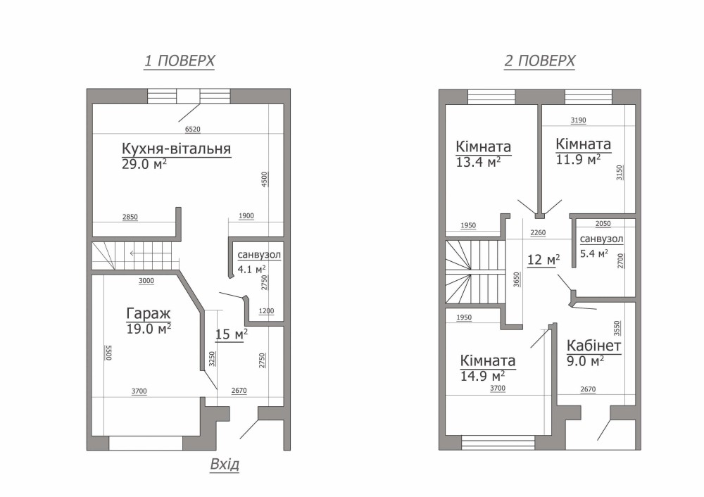 Масштаб: 135 м², 2 поверхи, 4 окремі кімнати та велика кухня-вітальня