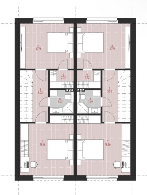 Будинок має функціональне планування: простора кухня-вітальня, 2–3 окремі спальні, санвузли на кожному поверсі. Світлі кімнати, великі вікна та продуманий простір створюють атмосферу комфорту.
