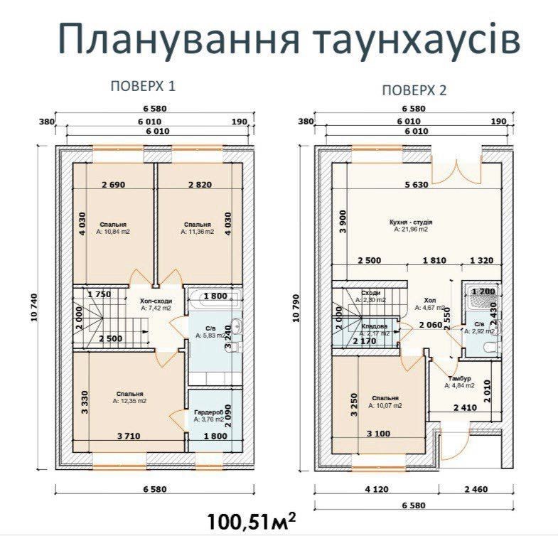 Загальна площа площа таунхаусу 100 кв.м. + мансардний поверх 40 кв.м.