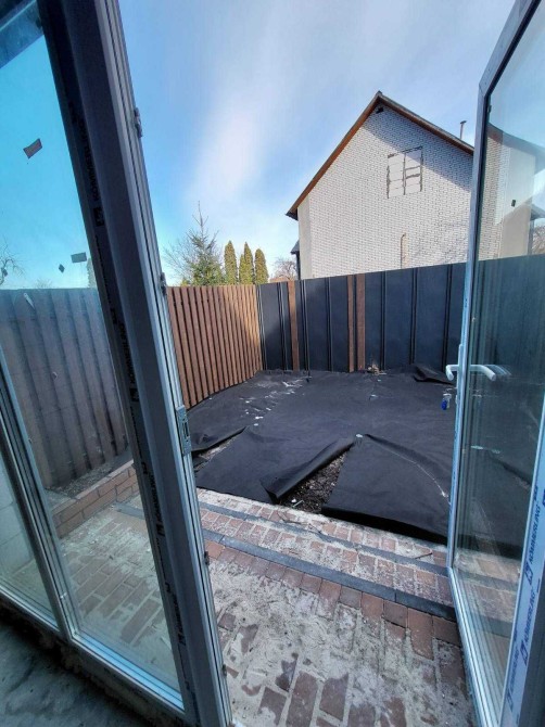 Сонячна сторона и найбільш земельна ділянка з усього комплекса ( тому на задньому дворі планувалося технічна будова для зберігання велосипедів та інших речей, а також зона відпочинку)