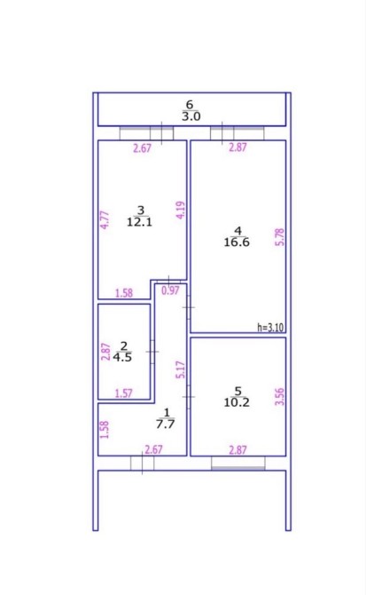 • Общая площадь 55 м2