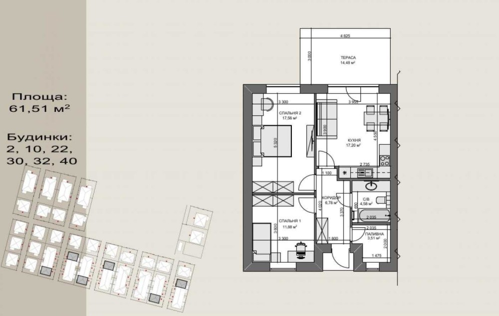 Площа 62,9 м2