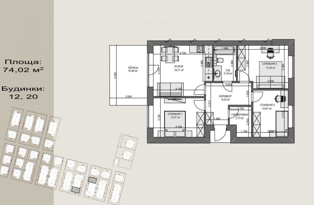 Одноповерховий таунхаус у Гостомелі