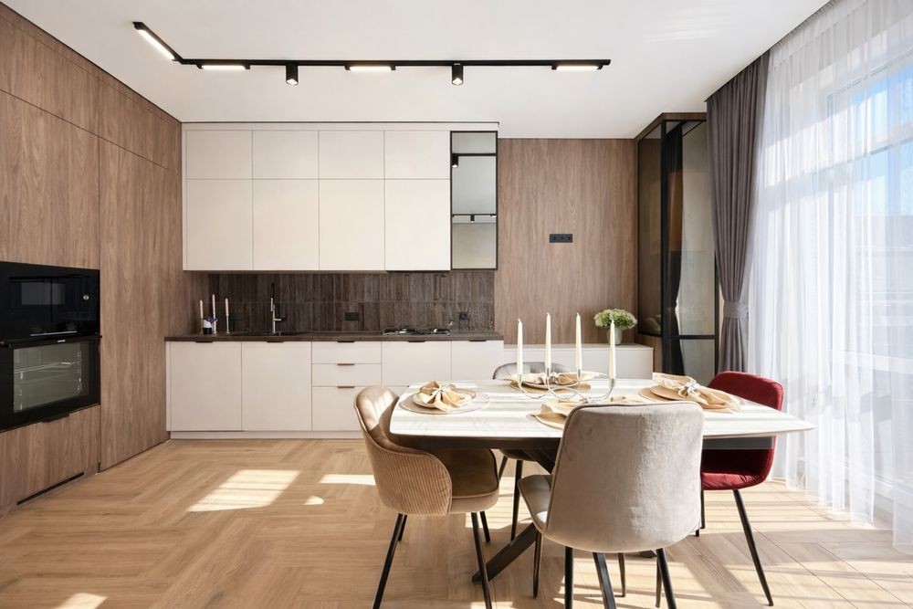 115 м2 простору з лаконічним дизайном в стилі мінімалізм , з красивим природнім світлом та всіма підключеними комунікаціями!