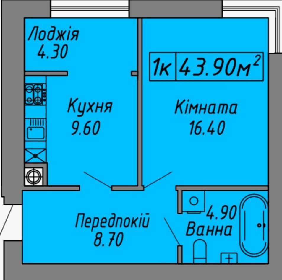 Загальна площа: 43,90 м²