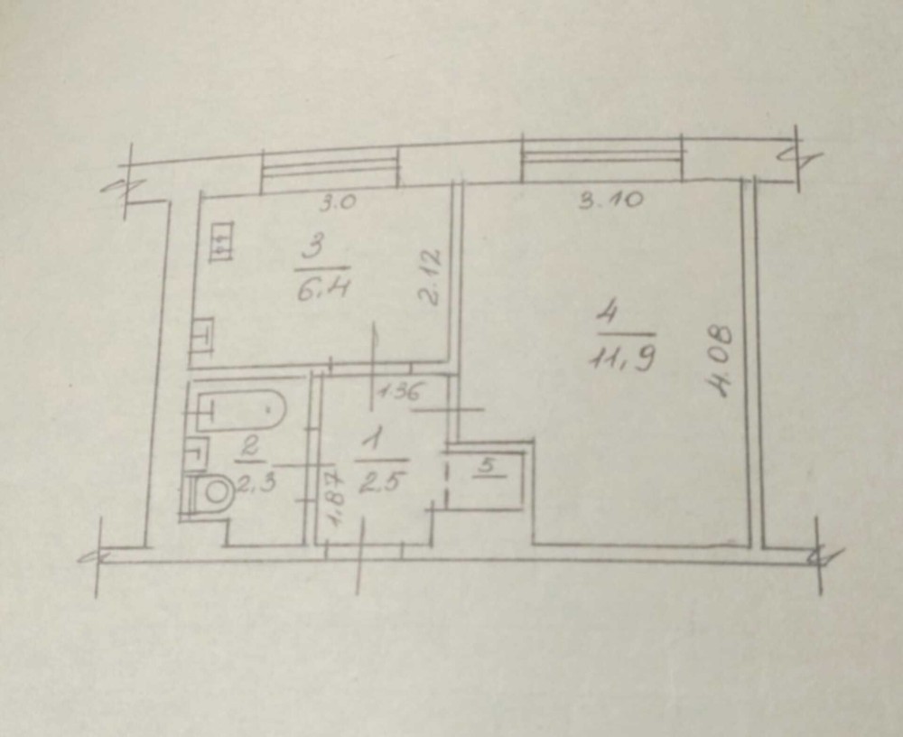 • Площадь кухни 6.4 м2