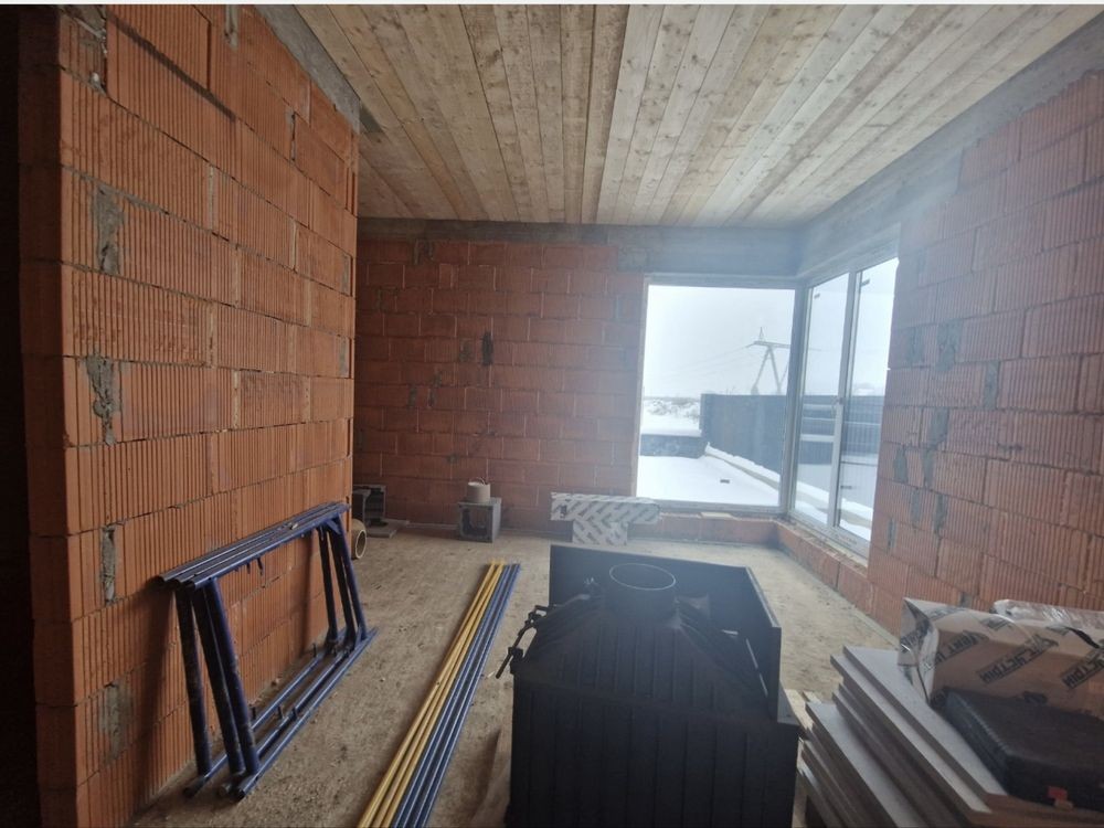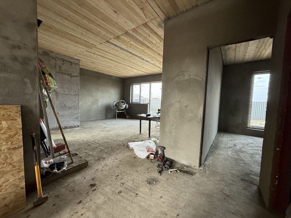 Продається недобудова загальною площею 120 м кв плюс тераса 3 кімнати кухня хол у якій є камін. Світло, вода, електрика, септик на 8 кубів. 4.1 сотка . Асфальтована дорога планується на весну. Ціна вказана з фасадом та внутрішньою штукатуркою.