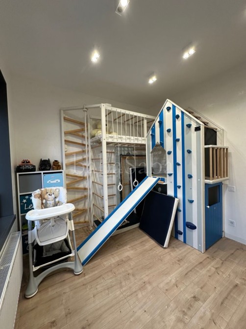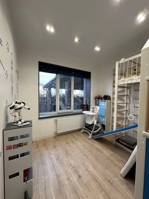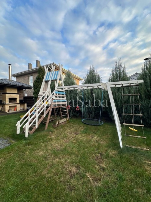 На першому поверсі: кухня-вітальня з виходом на терасу, санвузол (душ, туалет), дитяча ігрова кімната та хоз кімната. На другому: кабінет, дитяча, велика спальня з гардеробною, та ванна кімната. Будинок з керамічної червоної цегли, тому взимку дуже тепло, а влітку зберігається прохолода! У дворі дитячий майданчик, хоз приміщення у 20кв м, мангал та навіс на два авто! Стоїть генератор на 11квт!