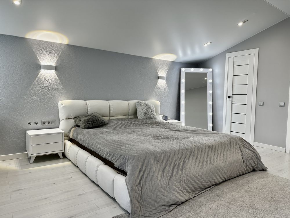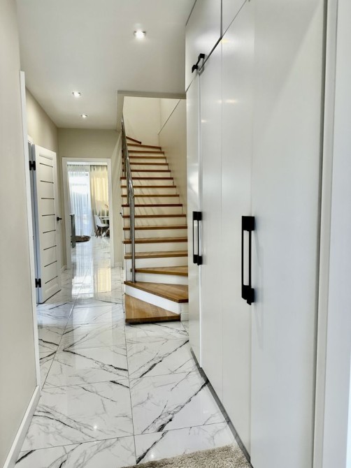 В будинку 4 спальні, кухня-вітальня (вихід з кухні через скляні двері на подвір'я), два санвузли, гардеробна та кладова. Тераса на другому поверсі. В будинку є всі меблі та необхідна побутова техніка.