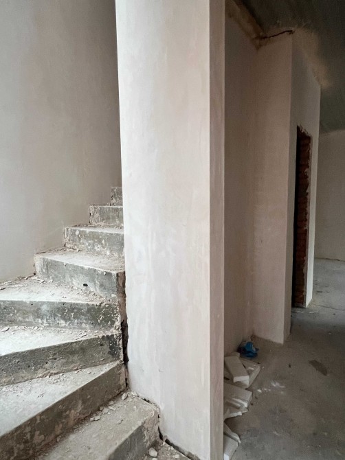 Зроблена чистова штукатурка та стяжка, розведена сантехніка, тепла підлога - перший поверх та санвузли.