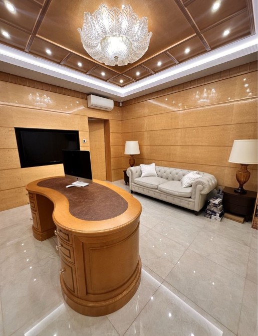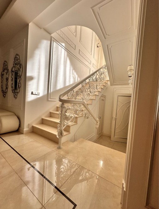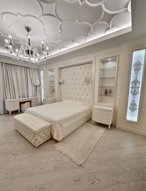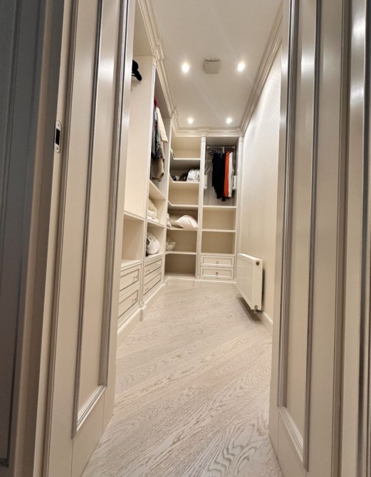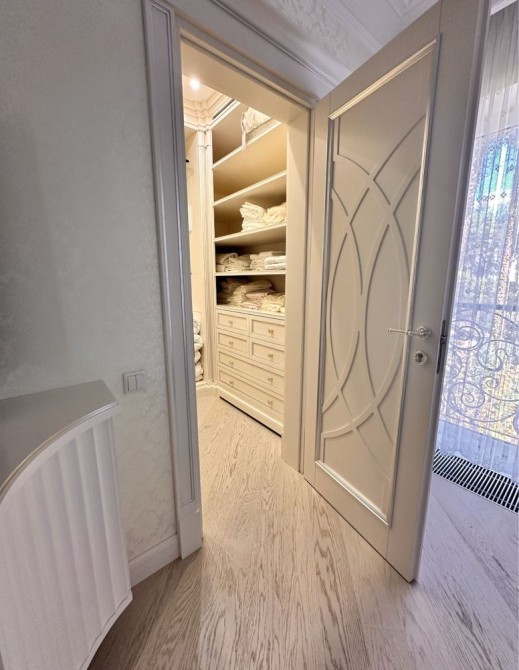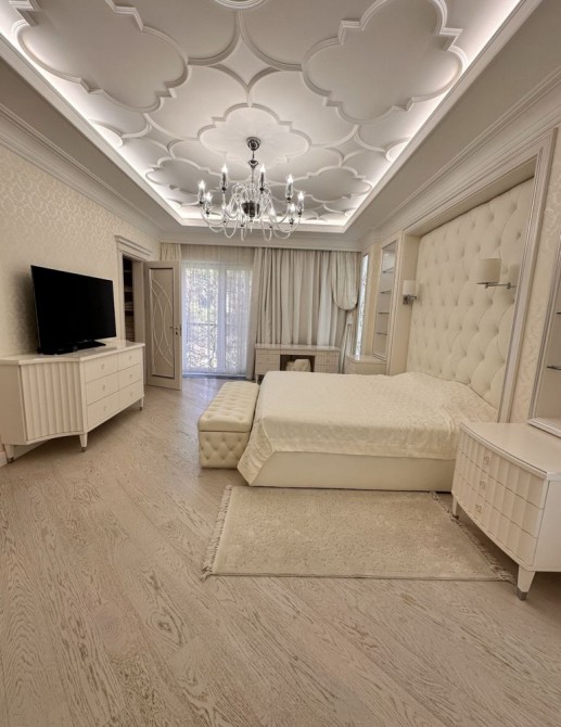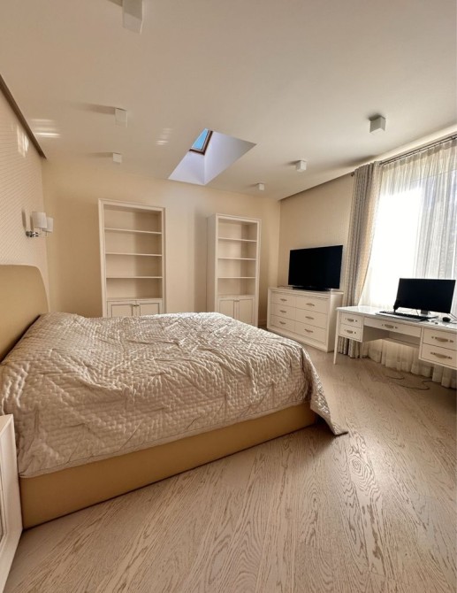 Розкішна господарська спальня з власним санвузлом та гардеробною, дитяча кімната, гостьова кімната з гардеробною, загальний санвузол з джакузі, велика гардеробна. Підлога в кімнатах з паркетної дошки. В санвузлах підігрів підлоги. Стіни оброблені преміум шпалерами та елітними шпалерами з шовковою ниткою.