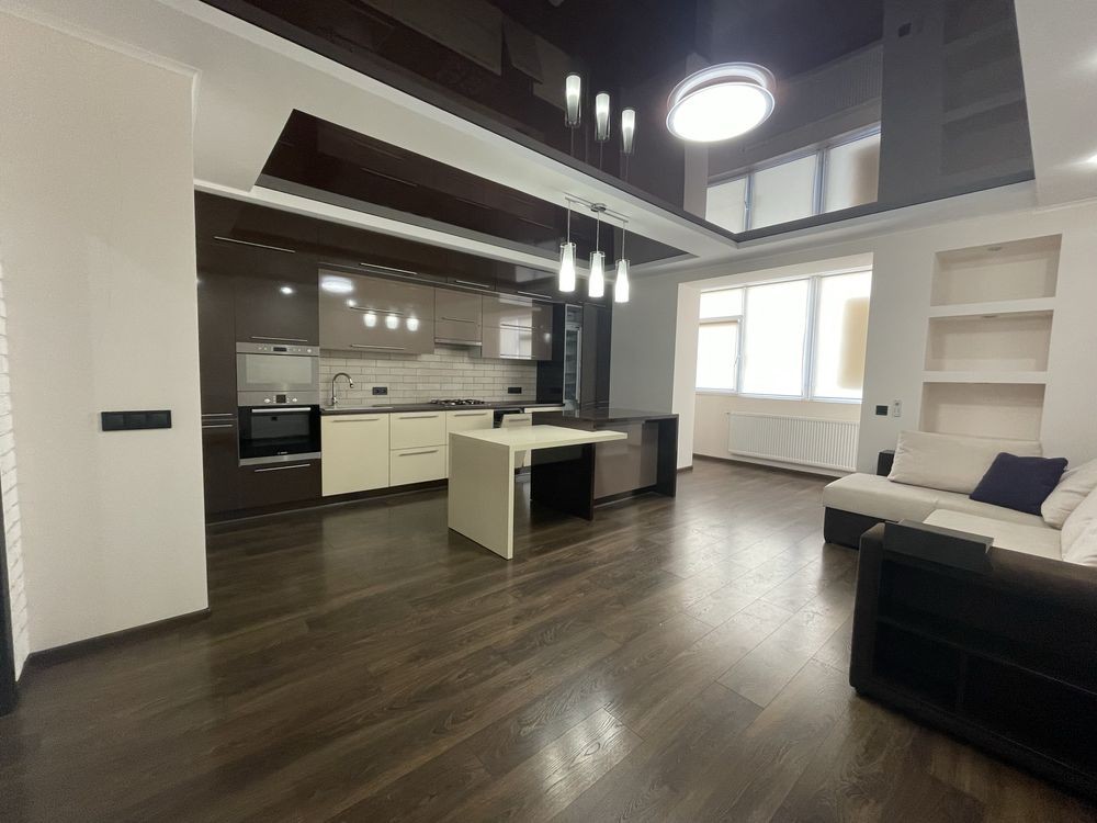 Велика стильна кухня-вітальня з продуманим дизайном. Встановлена фірмова побутова техніка: вбудовані холодильник Bosch, посудомийна машина Bosch, духова шафа Bosch, мікрохвильова піч Whirlpool, пральна машина LG та варильна газова поверхня Bosch. Газовий котел на індивідуальне опалення приховано у шафі на лоджії. Вікна кухні-сиудії виходять на Південний Бульвар. Тепла підлога у ванній кімнаті та коридорі. Простора затишна спальна кімната має лоджію та гардеробну, вікна виходять у внутрішній двір. Мʼякі меблі фірми Frankof. Підключено домофон та систему охорони.