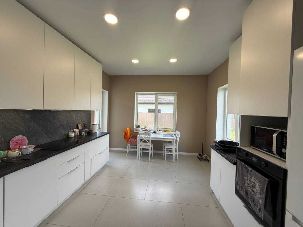 Повністю обладнана простора кухня з посудомийною машиною, подрібнювачем відходів, фільтрами для води, духовкою, мікрохвильовкою.