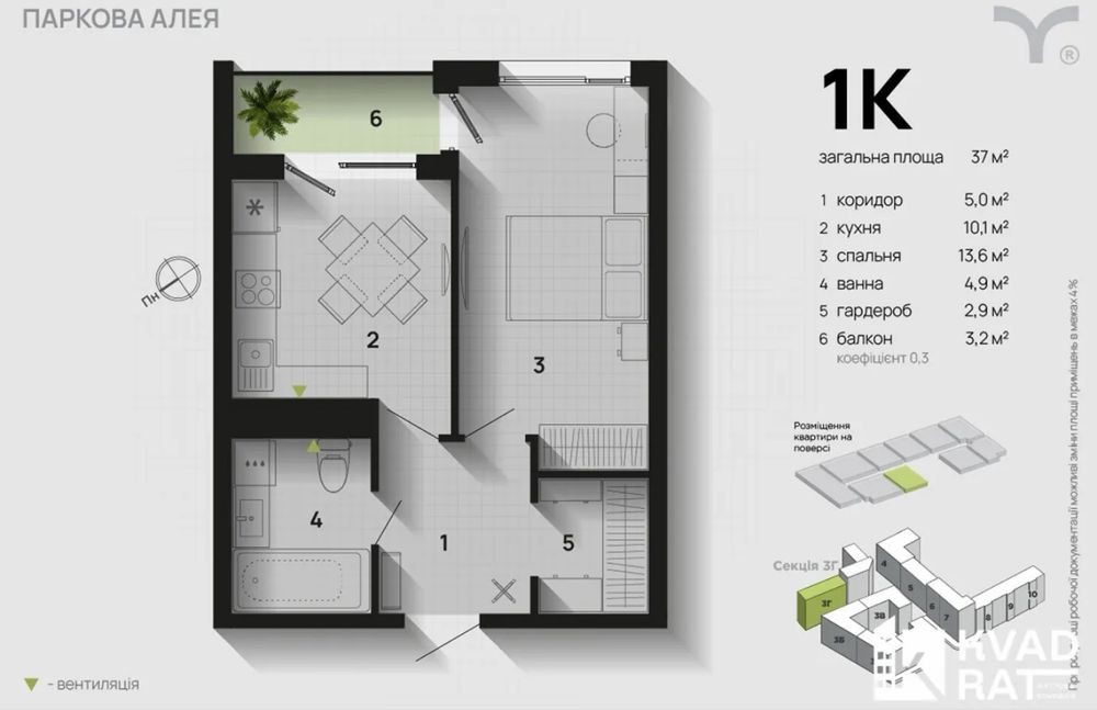 родаж 1-кімнатної квартири в ЖК Паркова Алея, Івано-Франківськ