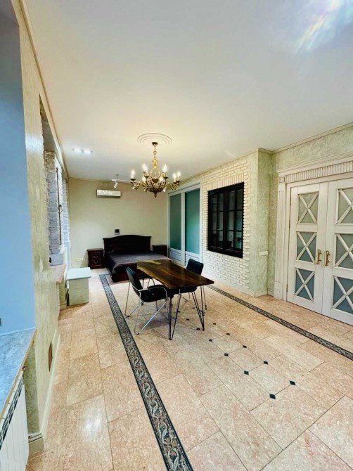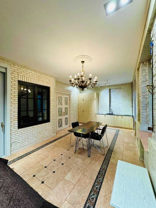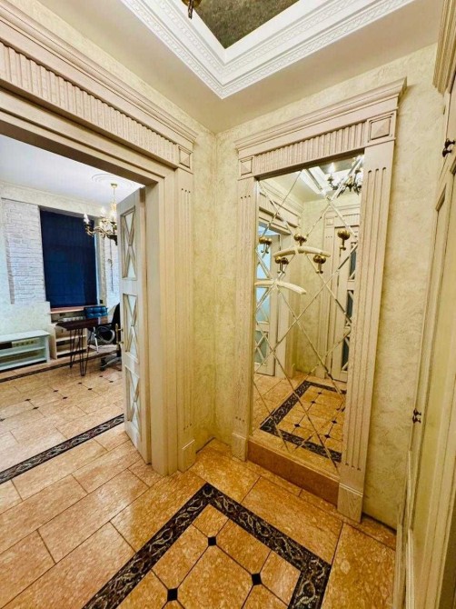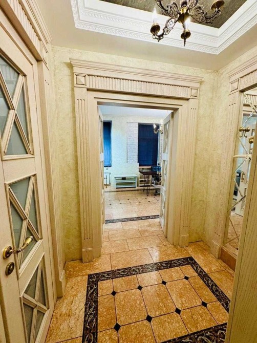 Інтер'єр виконаний за авторським проектом з використанням натуральних матеріалів - мармуру та дерева. Якісний, дорогий ремонт, продумане зонування простору.