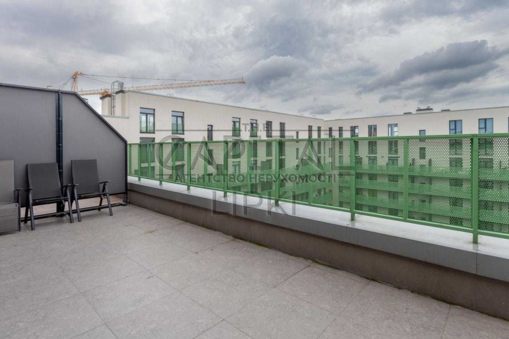 Квартира розташована на 4 поверсі, загальна площа — 120 м², додатковою перевагою є власна тераса 20 м² з атмосферою заміського відпочинку в межах міста.