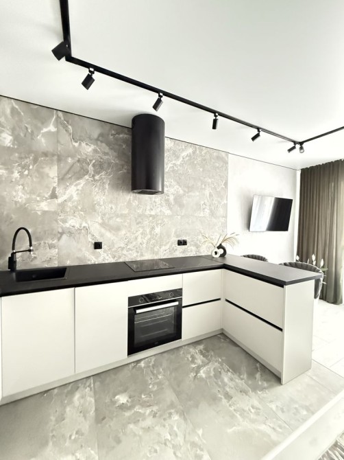 Квартира повністю укомплектована — якісні меблі, вбудована кухня, посудомийна машина, духовка, варочна поверхня, пральна машина, кондиціонер