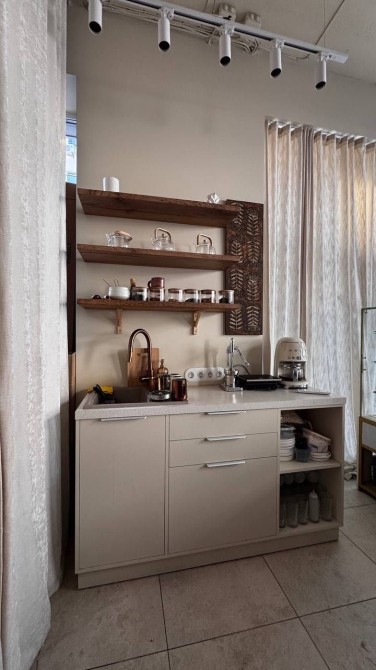 Є окрема зона для облаштування кухні. Столи вже вмонтовані.