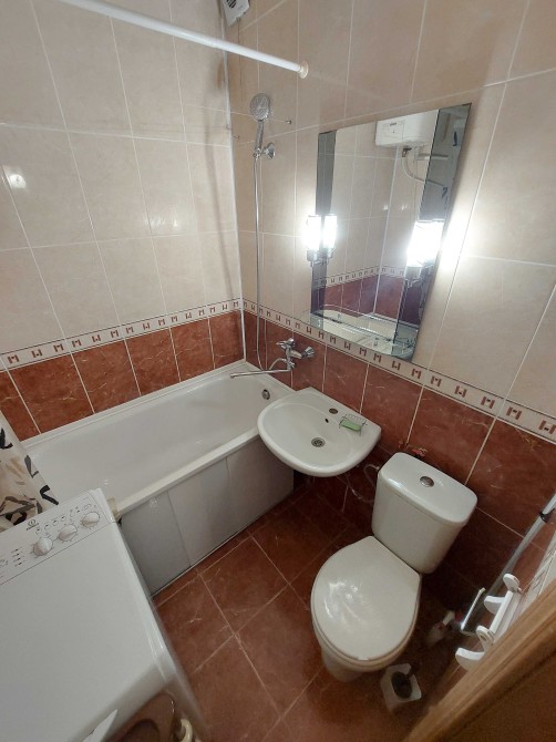 Є все необхідне обладнання: пральна машина, розкладний диван, розкладне крісло, стіл, стільці, шафа-купе, холодильник, бойлер, кондиціонер, плита газова.