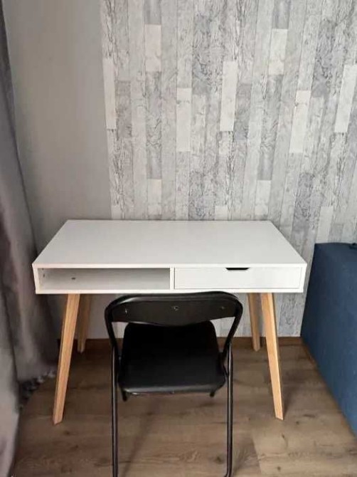 Квартира повністю укомплектована для комфортного проживання: встановлено новий бойлер, пральну машину, кухонні меблі та побутову техніку. У кімнаті — повноцінний двоспальний диван, письмовий стіл, кухонна зона. Великий балкон розширює простір і може бути облаштований як зона відпочинку або робоче місце.