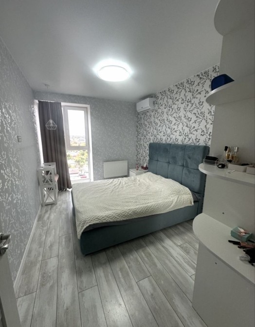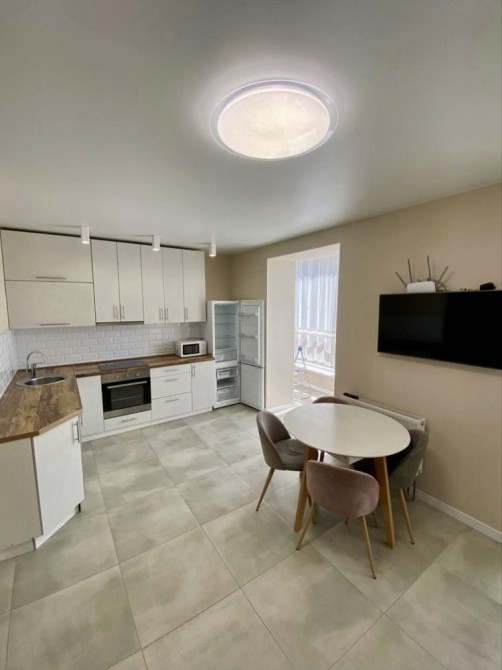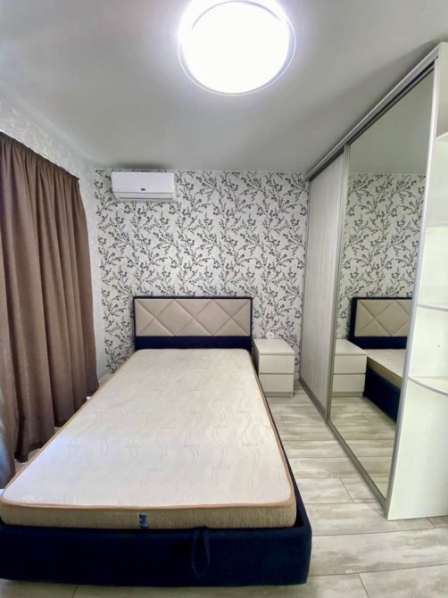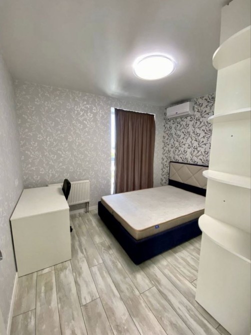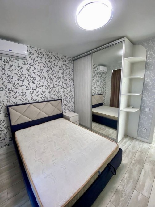 Квартира з євроремонтом, повністю мебльована і готова до заселення. Панорамні вікна забезпечують чудове природне освітлення, створюючи світлу й приємну атмосферу. Встановлено кондиціонер і бойлер, є вся необхідна техніка: холодильник, електроплита, духова шафа, мікрохвильова піч, телевізор, а також зручні меблі — диван, письмовий стіл, односпальне ліжко, шафа-гардероб, вбудована кухня й обідня зона.