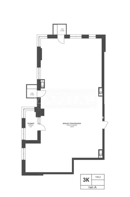 Простора зона з правильними пропорціями. Легко зонувати на кухню, dining space та soft-зону відпочинку. Є вихід на лоджію.