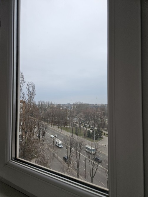 Окна выходят на две стороны (на центральный проспект, и во двор).