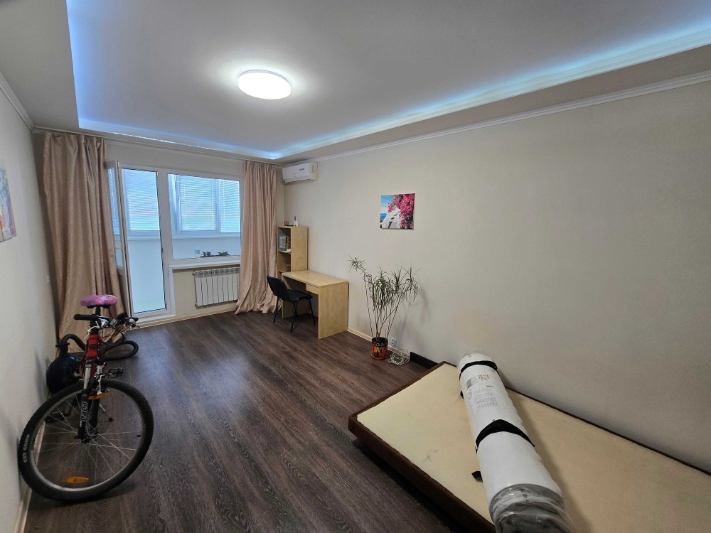 Пространство: Две раздельные комнаты. Есть огромная двуспальная кровать для качественного сна и диван для гостей (или чтобы просто поваляться). Два шкафа — поместится всё, даже то, что ты не носишь.